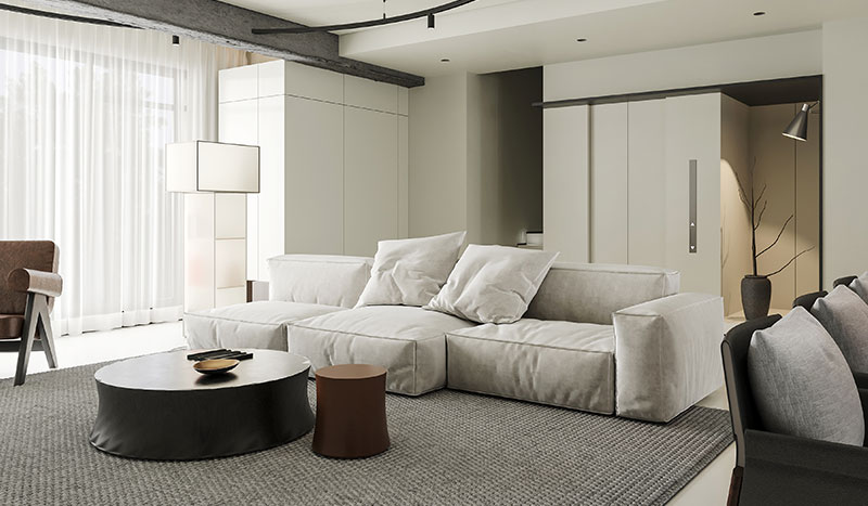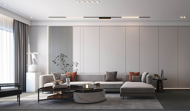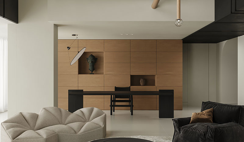 說(shuō)明:設(shè)計(jì)初衷秉著純粹自然的美學(xué)在整個(gè)空間應(yīng)用在設(shè)計(jì)中,摒棄了繁瑣的裝飾, 用現(xiàn)代感的巧思,描繪出時(shí)尚的、有格調(diào)的空間。以暖咖色為主色調(diào),搭配大面積黑白灰,彰顯了空間的優(yōu)雅與大氣。在空間布局上,大部分空間為開(kāi)放式,增加采光面積,看似整體統(tǒng)一又在墻面棚頂上分割空間,在視覺(jué)上形成了簡(jiǎn)約寬敞的效果。選材上多用藝術(shù)漆和墻板,少面積的巖板和木作,運(yùn)用不同的色彩、材質(zhì)、肌理打造沉穩(wěn)的分量感