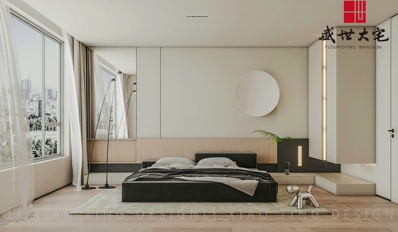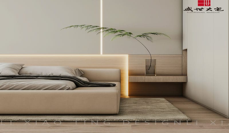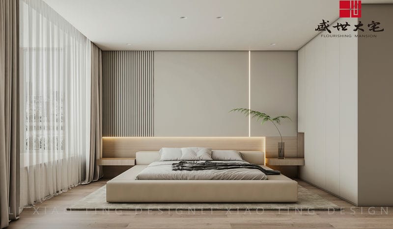 次臥則以素雅為底,創(chuàng)造細(xì)膩的情境,背景以干練的線條實(shí)現(xiàn)對(duì)比、分割。軟裝亦在多元的搭配中展現(xiàn)出節(jié)奏感,以簡(jiǎn)約的筆觸來(lái)呈彼此的呼應(yīng)關(guān)系。