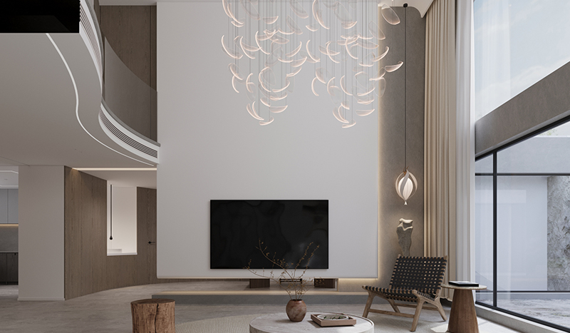 通過對傳統(tǒng)文化的認識,將現(xiàn)代元素和傳統(tǒng)元素結(jié)合在一起,以現(xiàn)代人的審美需求來打造富有傳統(tǒng)韻味的事物,讓傳統(tǒng)藝術在當今社會得到合適的體現(xiàn)在此案例中,門廳采用中式屏風的裝飾分割,使空間更加靈活。開放式的廚房,最大限度提升的業(yè)主對生活的熱愛和創(chuàng)想。采用大挑空的設計手法,讓空間無線延伸。令景色盡收眼底。地下層的禪意空間更具品味與自然,沿用古色古香的中式元素和簡單素雅的現(xiàn)代線條自然銜接,設計上令空間的現(xiàn)代氣息與東方韻味共存且維持平衡,打造質(zhì)感十足的室內(nèi)氛圍。