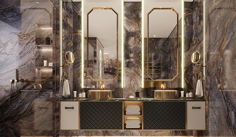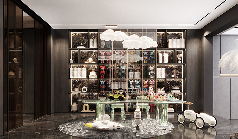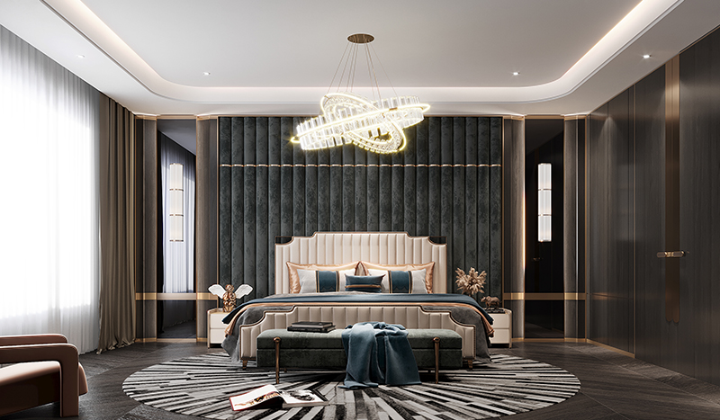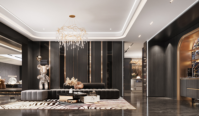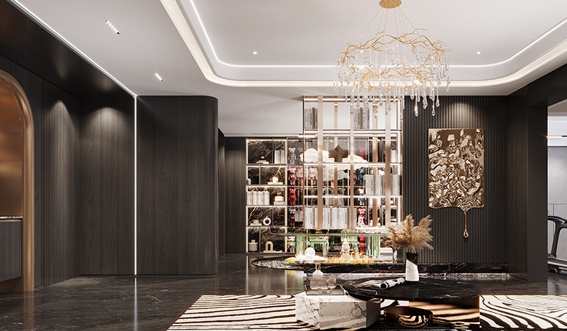 設(shè)計奢華的裝飾品點綴在每一個角落,金色的擺件、華麗的壁畫,展現(xiàn)出高貴與尊貴的氣息。軟綿綿的沙發(fā)與柔軟的地毯,讓人倍感舒適與溫馨。華麗的吊燈,點亮整個空間,璀璨燈光映照下,給空間帶來高貴典雅的氣息,金色鏡面裝飾以及金屬包邊,折射光線的同時也加深了空間感,不僅帶來了視覺上的享受,也融合了居者的感官體驗,低調(diào)奢華的秩序與精工匠造的設(shè)計細(xì)節(jié),重構(gòu)客廳的空間,體驗低調(diào)的奢華。