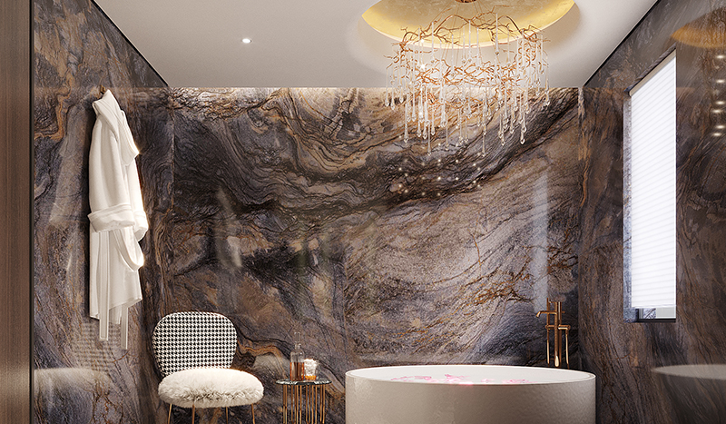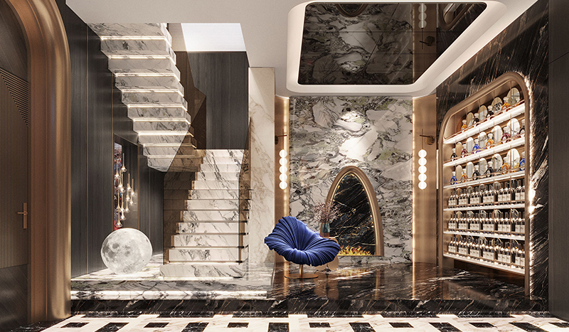 設(shè)計說明:全屋整體采用沉穩(wěn)的棕咖色,運用木飾面、石材、金屬等不同的材質(zhì),搭配奢華質(zhì)感的家具與燈具,賦予空間層次感,帶來了自由與貴氣,低調(diào)與奢華,鋪陳出一個自由流動的空間和一幅流光瀲滟的意式美景,在張力十足的線條勾勒、層次豐富的材質(zhì)運用以及質(zhì)感奢華的裝飾細(xì)節(jié)下,為居住者帶來一種奢雅的生活體驗。
