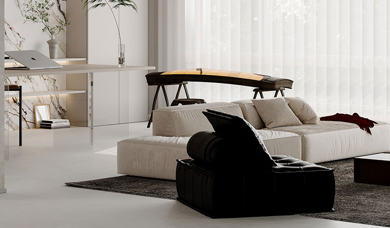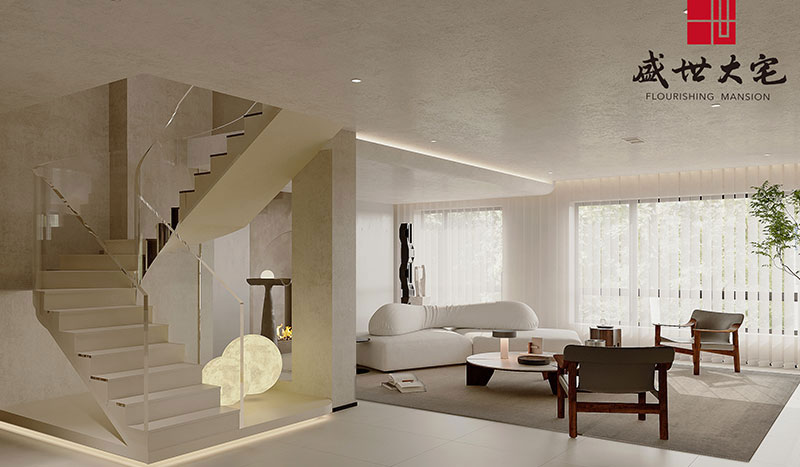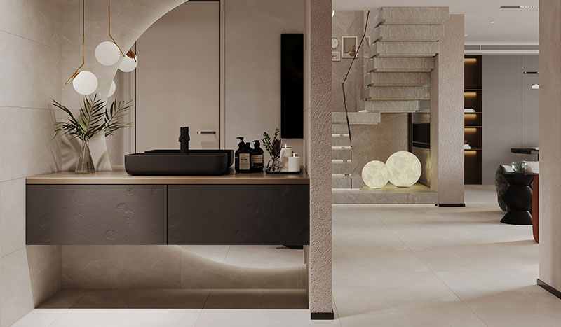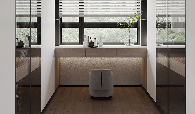 讓居住者再細膩的浸潤中,傾聽內(nèi)心深處的出動。以溫潤的高級灰貫穿其中,又深諳克制平衡,讓一切和諧共融,同時引入建筑設計手法,不同材質(zhì)穿插組合,色彩及明暗對比。