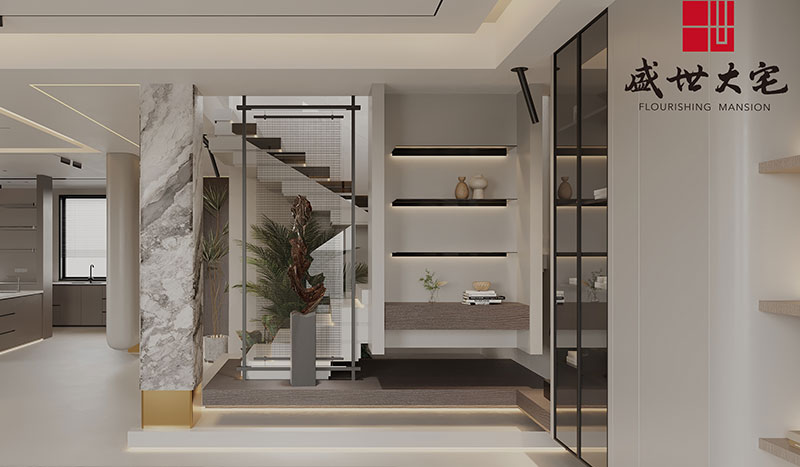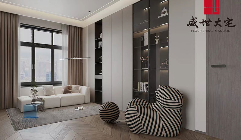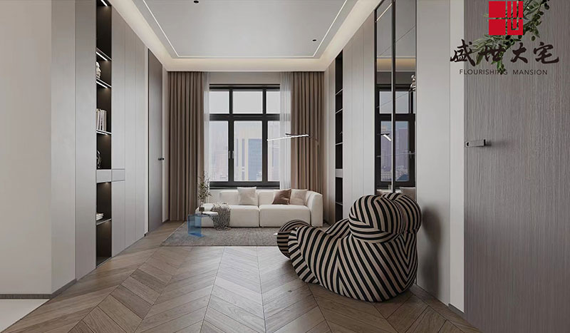 本案采用意式極簡(jiǎn)風(fēng)格,同時(shí)對(duì)燈光要求比較高,用了當(dāng)下流行的無(wú)主燈。