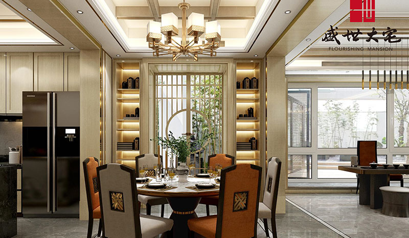 一層空間利用外建的方式,打造出通透寬敞的門廳。采用新中式和意式簡約相結(jié)合的方式,并將房屋進(jìn)行了拆改,增強空間互動性,使空間具有大氣簡約的意境。