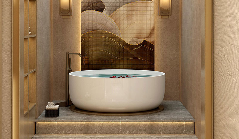 這套設(shè)計里,既有端莊的方,又有大氣的圓,正如客廳里方形的茶幾和圓形的裝飾窗,以及圓弧的方形天花,剛?cè)岵?jì),舒適又和諧。