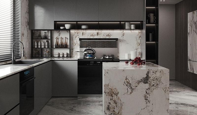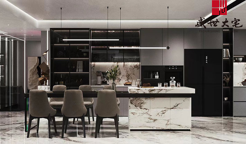 情感是空間的靈魂,烹飪是家的情感能量站。 U字操作區(qū)+島臺(tái),在人體工學(xué)的指導(dǎo)下發(fā)揮強(qiáng)大的實(shí)用功能 ,配以精巧的細(xì)節(jié)處理,呈現(xiàn)給家人不一樣的人間煙火,滿(mǎn)足每一位家人的味蕾。