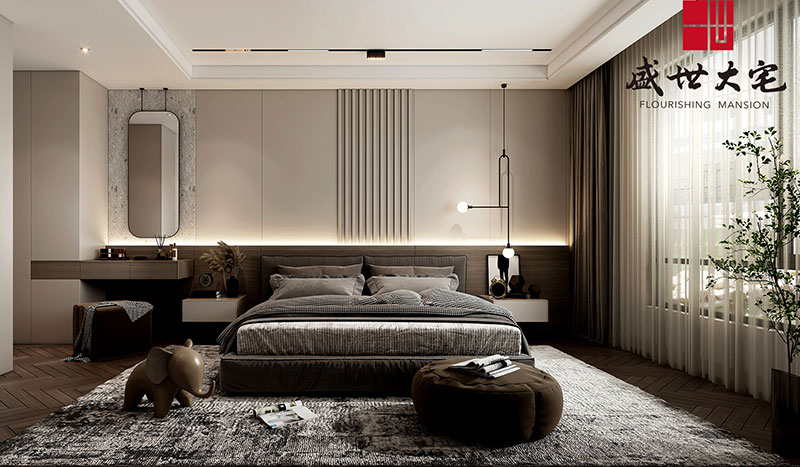 主人臥室是家的心臟 。當(dāng)下空間屬性的邊界正在變得模糊,使用場(chǎng)景和居者的生活密度被不斷放大,而設(shè)計(jì)通過(guò)創(chuàng)造空間的更多可能性,讓居者生活狀態(tài)與社交需求有效結(jié)合,在場(chǎng)域內(nèi)實(shí)現(xiàn)精神層面的共振,用敘事的手法賦予臥室空間場(chǎng)景,讓主人更能深刻感受每一個(gè)關(guān)乎日常生活的片段